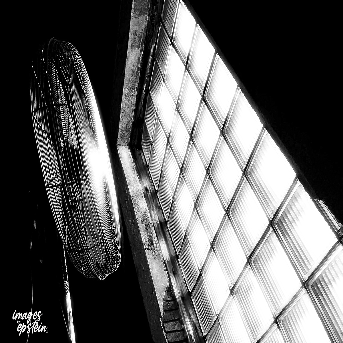 Fan on Glass Block Window